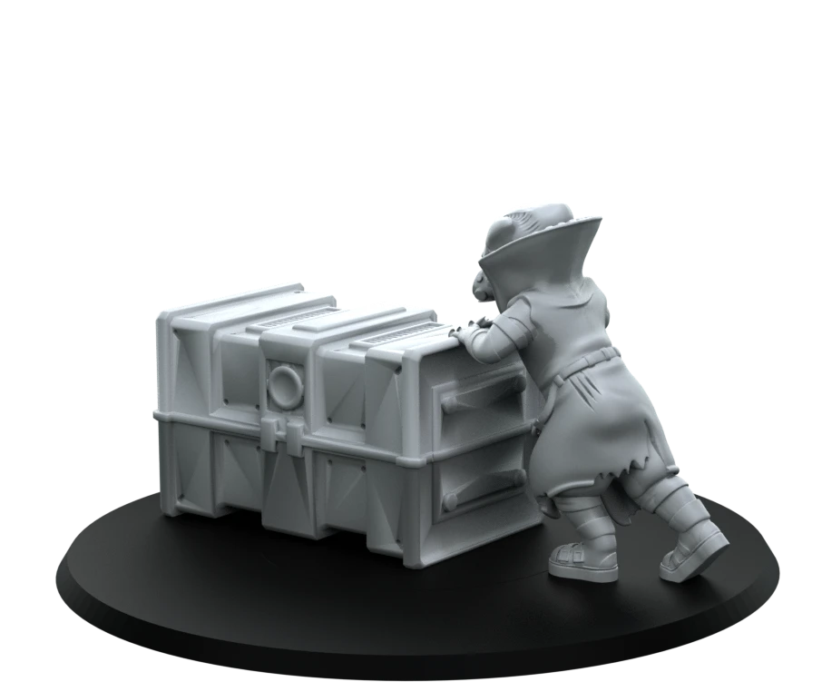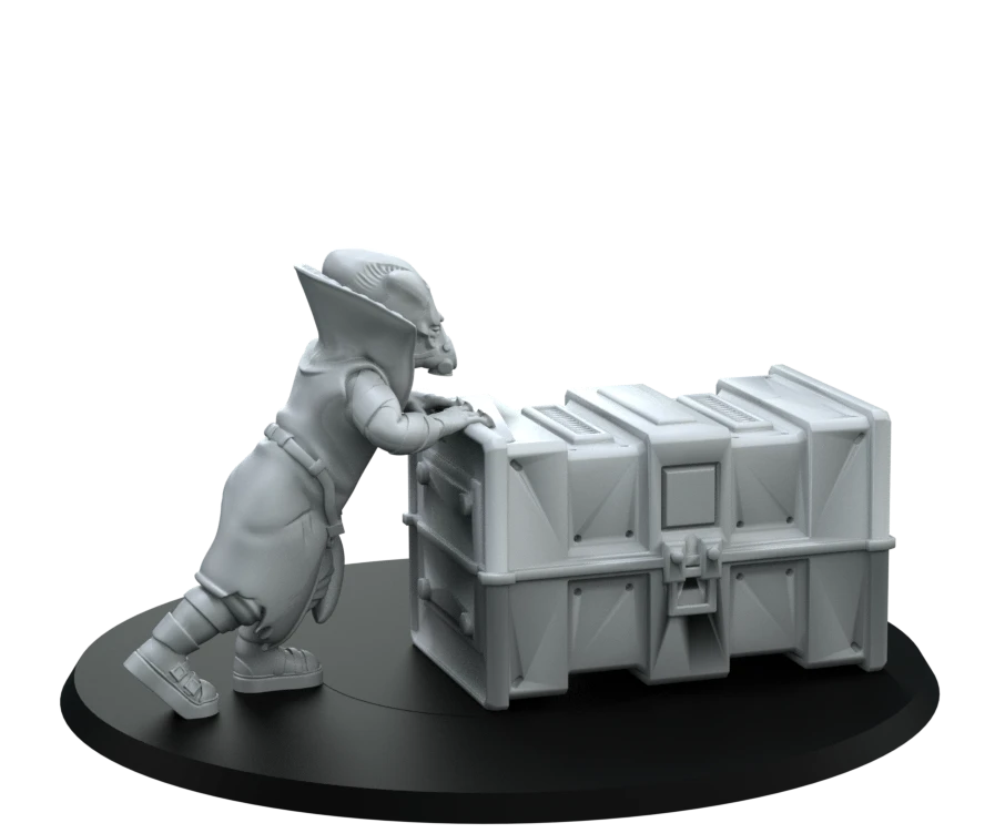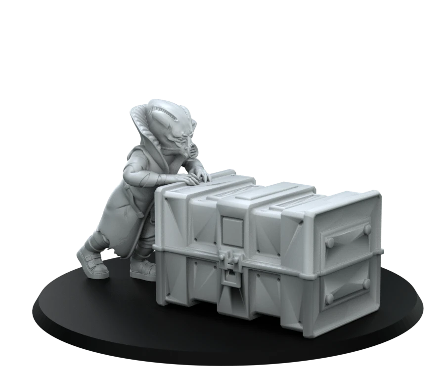Modelled as a Tarazji Alien Contraband Dealer, pushing their wares between customers. Wearing common street clothes and a respirator.
