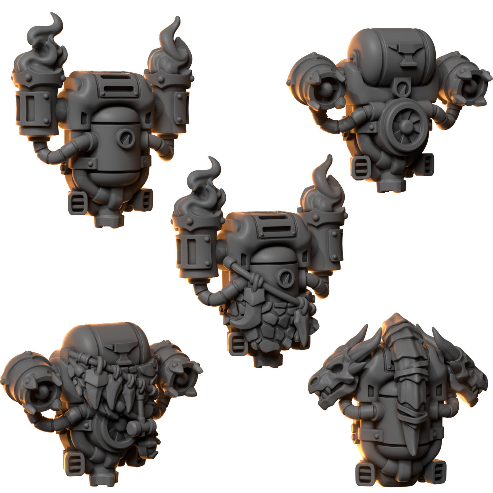 Modelled to fit most popular space fairing warrior kits. Each Backpack set supplied is a set of 10 backpacks in the Anvil Wardens styling. 5 different styles.
