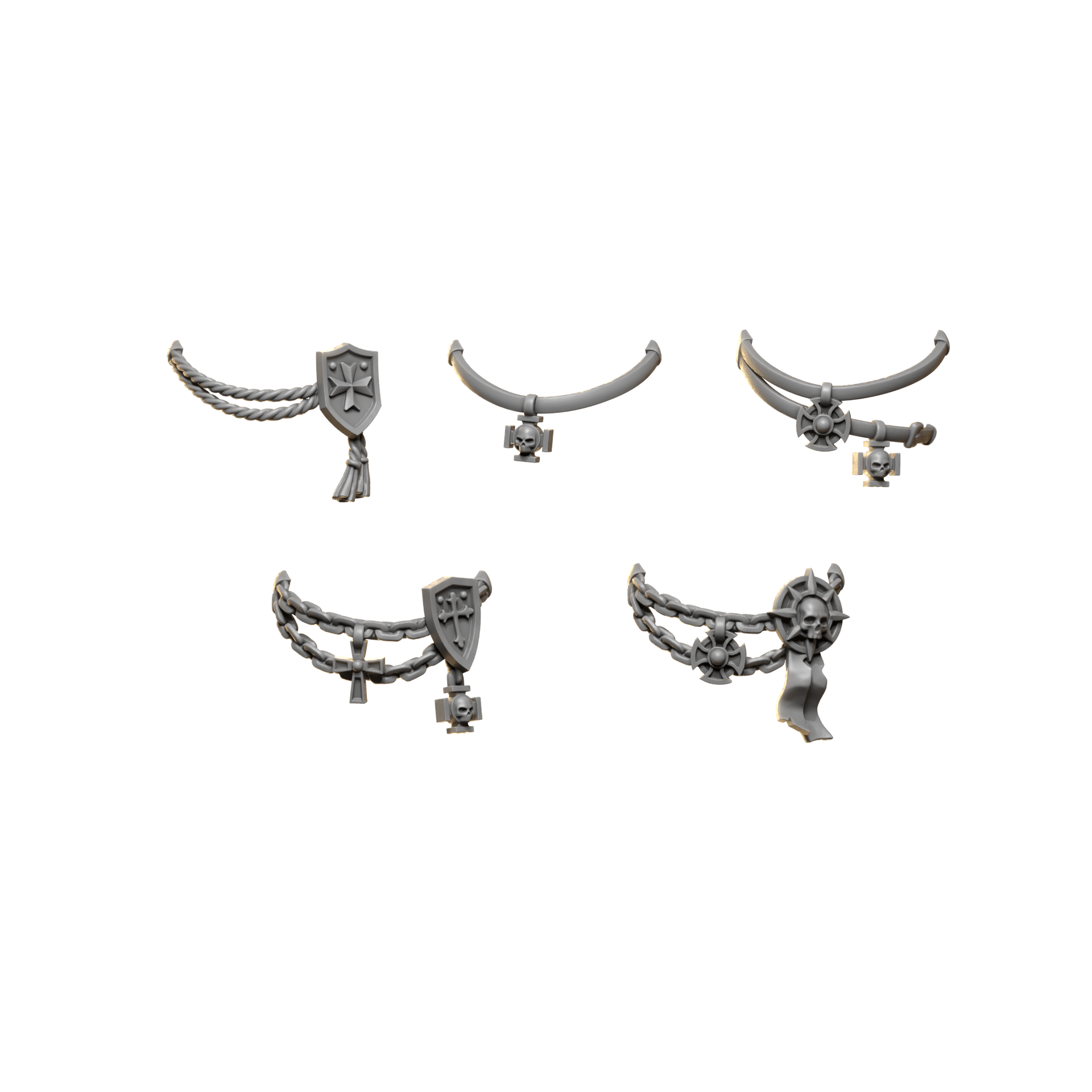 Modelled to fit most popular space fairing warrior kits. In the Eternal Crusaders – decorative set we have the following;