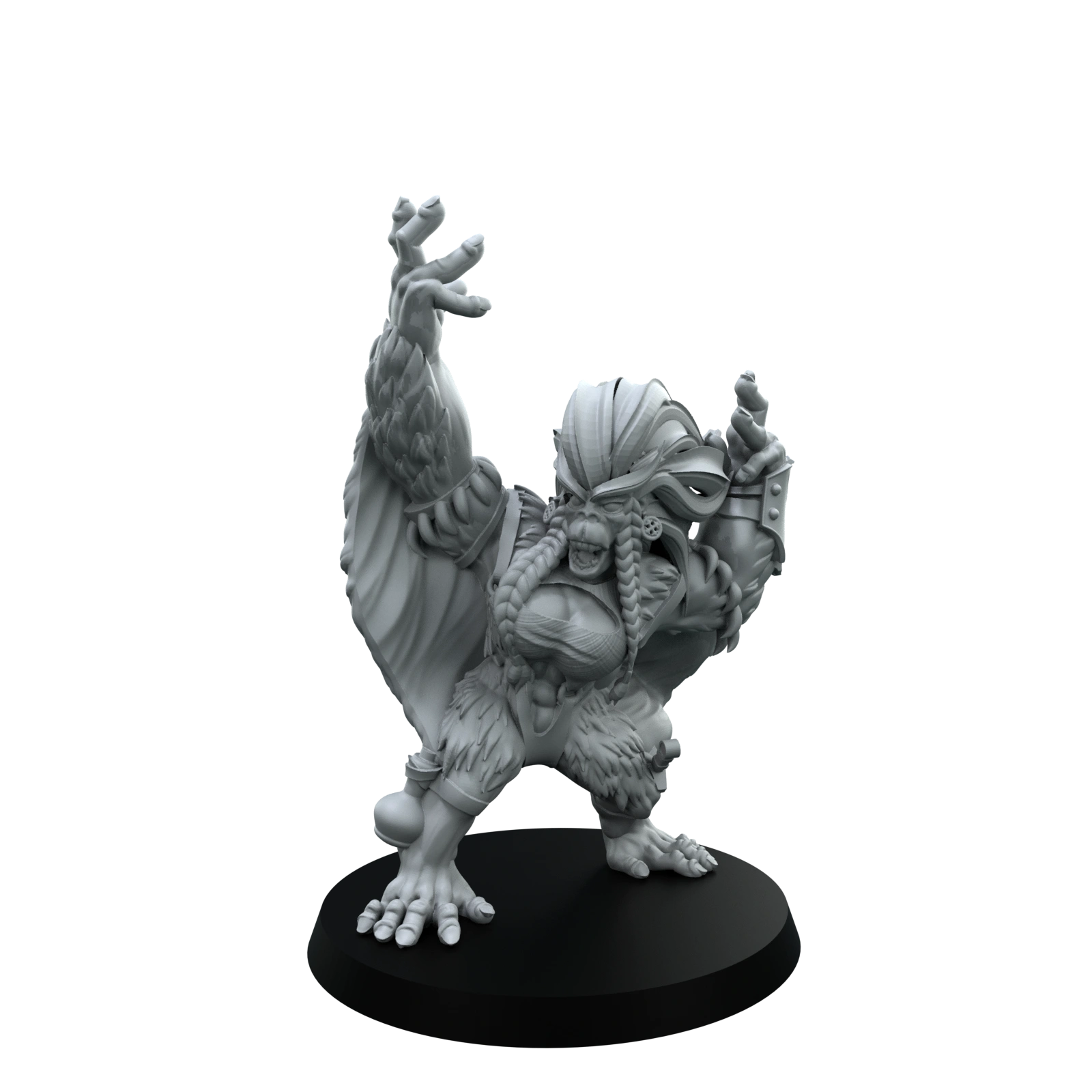 On the table, the Flying Ape Shaman excels as a jungle caster, sky-tribe chief, or monstrous ally for any fantasy force. Painters will enjoy blending across the wing membranes, drybrushing the fur, and dotting beads and fasteners with bright accents. It’s a striking centerpiece that brings motion and mysticism to your collection.