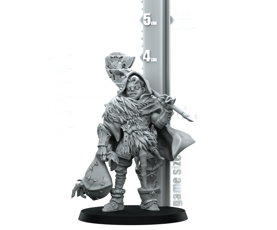 Modelled as a human hunter who specialises in killing vermin. Wearing mixed heavy and light armour and wielding an intricately designed shovel? This model from RN Estudio is designed in the DnD Fantasy Style.