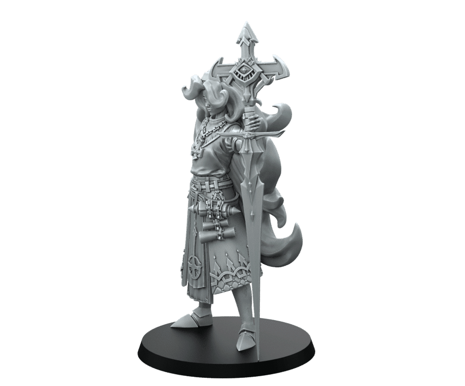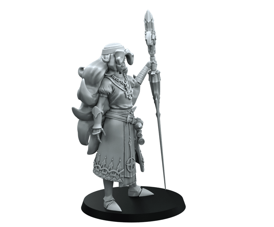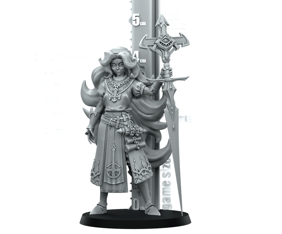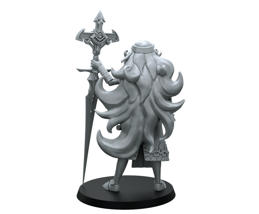 Modelled as a human priest with long flowing hair and holy symbols. Wearing Heavy plate armour and wielding a crazy sword like Quarterstaff! This model from RN Estudio is designed in the DnD Fantasy Style.