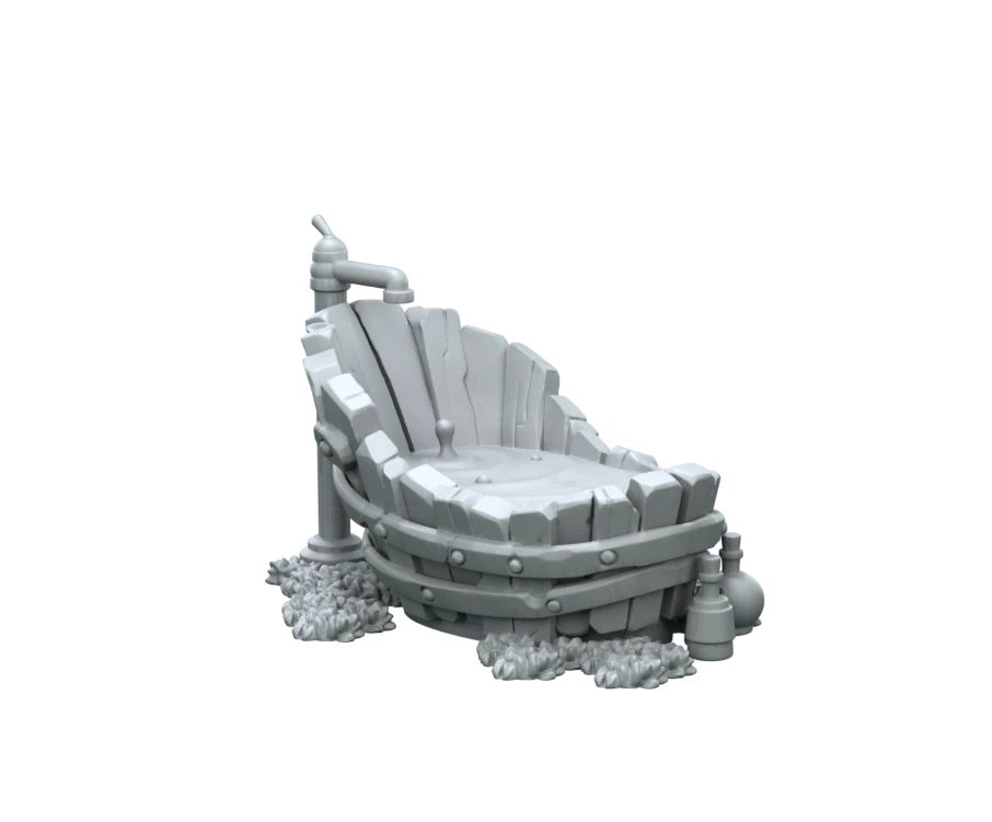Transform your tabletop encounters with the Mimic! Bathtub Set — an unpainted resin miniature that looks like an everyday bathtub… until it grins back at you. This detailed model captures both the innocuous and the uncanny with sculpted distortion that suggests something delightfully wrong is lurking beneath the porcelain.