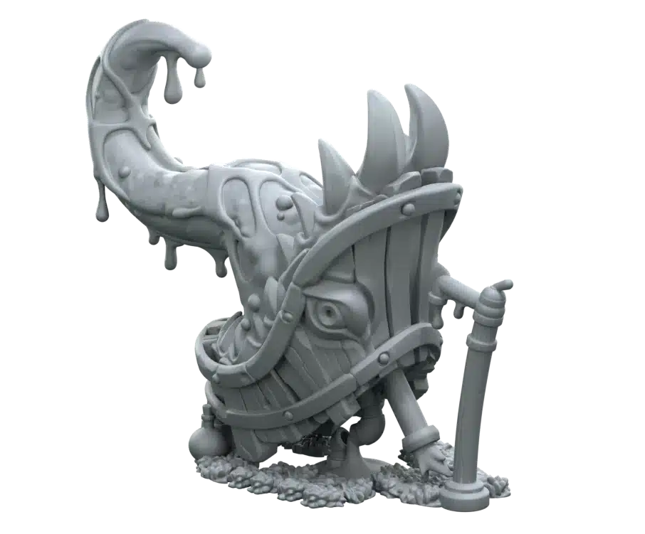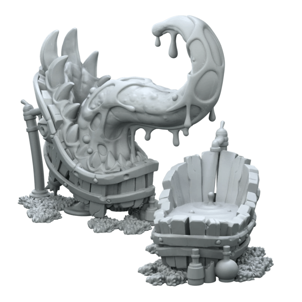 Supplied with both pre‑mimic and “after‑reveal” versions, it’s perfect for dramatic switches during RPG sessions, narrative set pieces, or standout diorama moments. Each piece comes unpainted and on a plastic base, ready for your custom paintwork to bring out the texture, menace, and mischievous personality. Whether tucked into a haunted bathroom scene or ambushing unsuspecting adventurers, this bathtub mimic adds a splash of chaos to any fantasy setting.