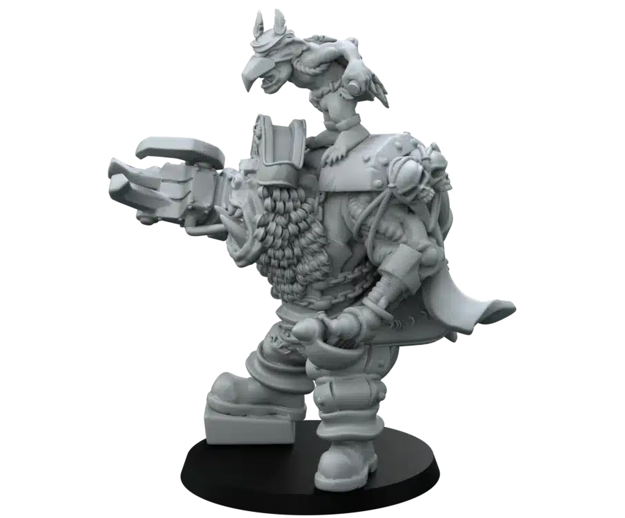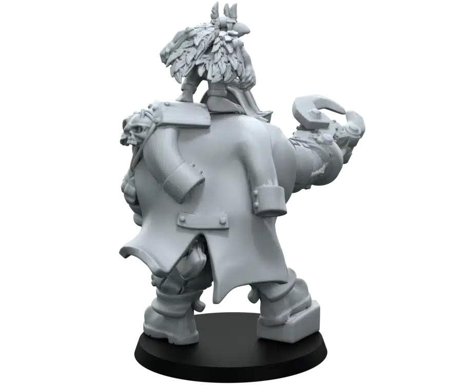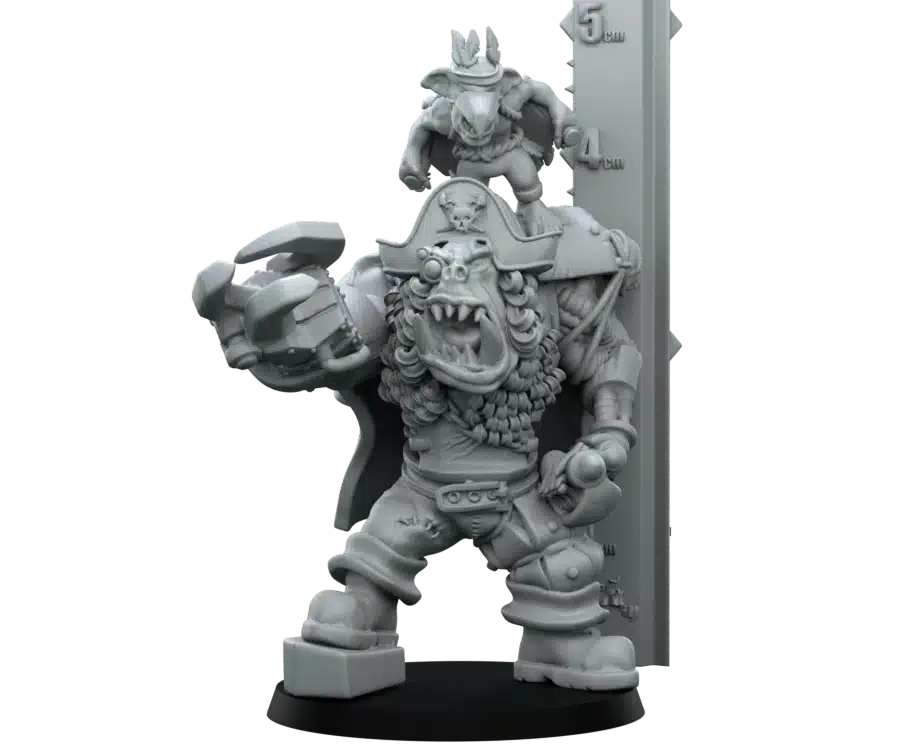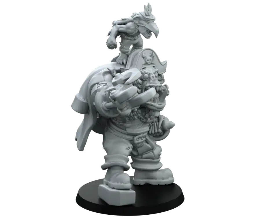 Modelled as an Ork Captains mate. Dressed as a pirate with classic curls and pirates hat. Wielding a power claw and scimitar this Ork is a terror of the seven seas. Pssst. We don’t point out his parrots a goblin!