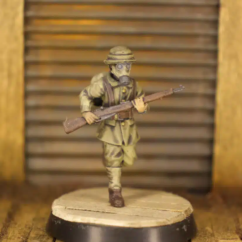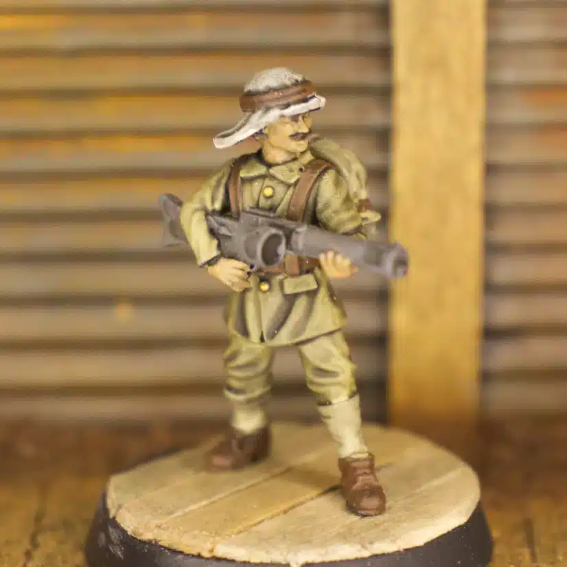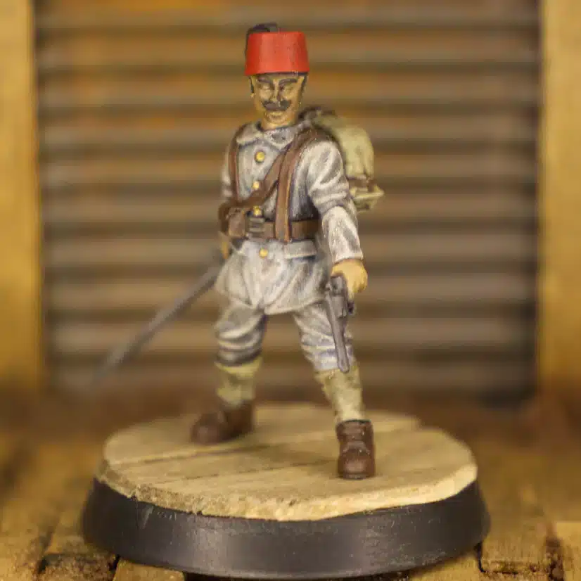 Five miniature WW1 Ottoman Army force, with an Officer, Heavy Weapon, and three others. Five different poses.