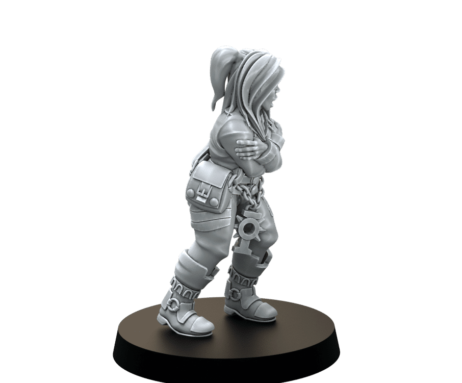 A detailed Underhive Citizen – Female Hiver miniature, ideal for sci-fi tabletop RPGs, skirmish games, and narrative scenes. Perfect as a civilian, NPC, or background character.