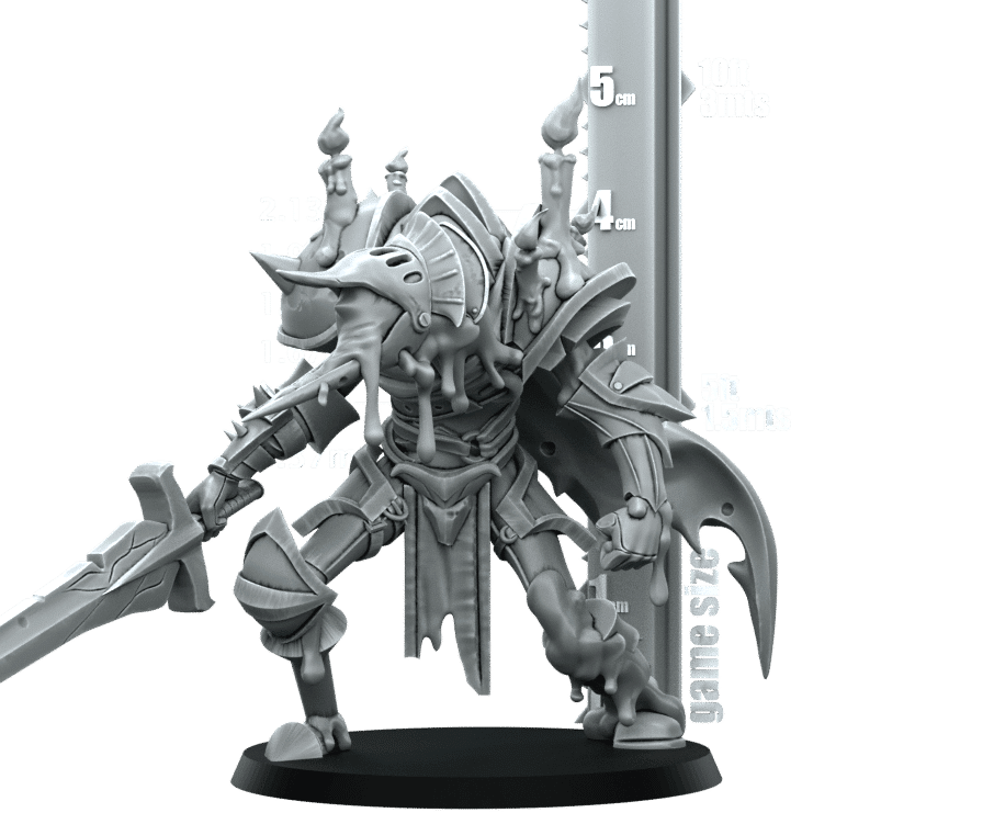 Modelled as a knight of the flame. Wearing heavy armour over what seems to be molten wax within and wielding a longsword. This model from RN Estudio is designed in the DnD Fantasy Style.