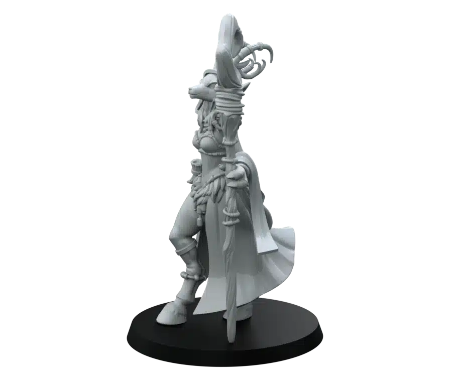 Modelled as a Deerfolk Druid, wearing her tribal cloths hood over her cloven feet. Wielding her staff and her innate ability to understand nature and control it.